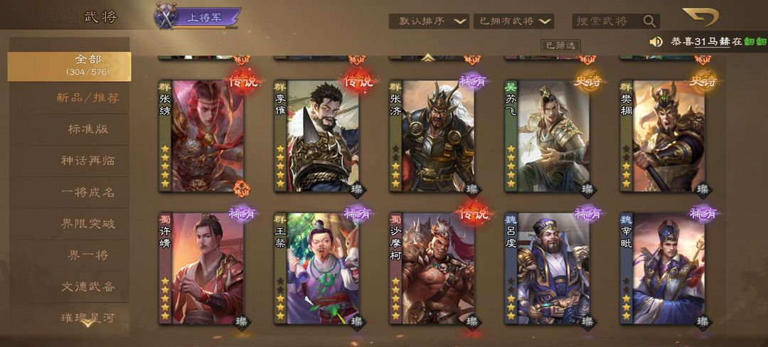 三国杀ol账号V9微氪,国战号张绣沙摩柯