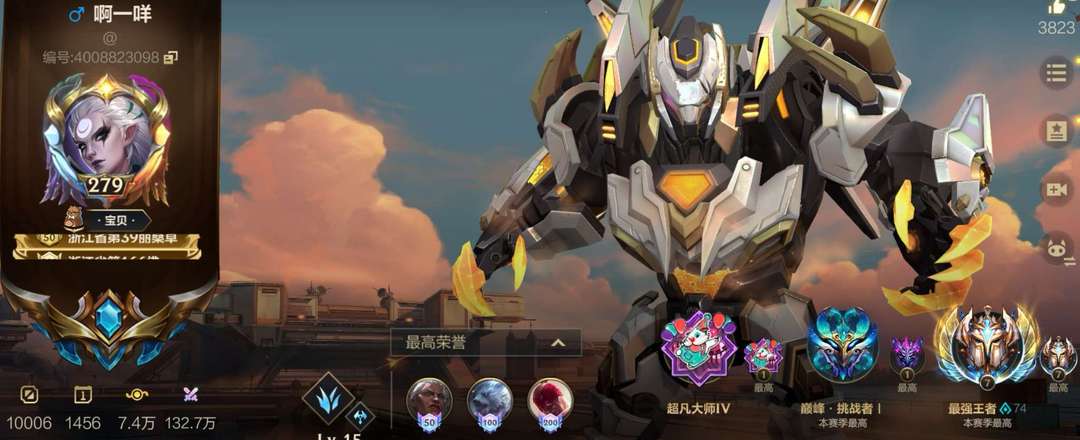 新赛季王者段(金色翅膀)⭐️多个国服英雄⭐️437皮肤⭐️雷霆神兵⭐️乘龙破渊⭐️六神话⭐️全英雄
