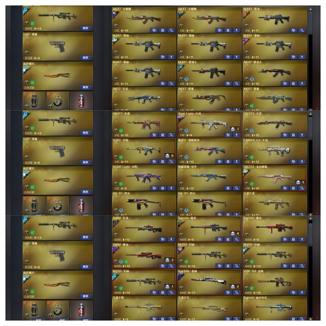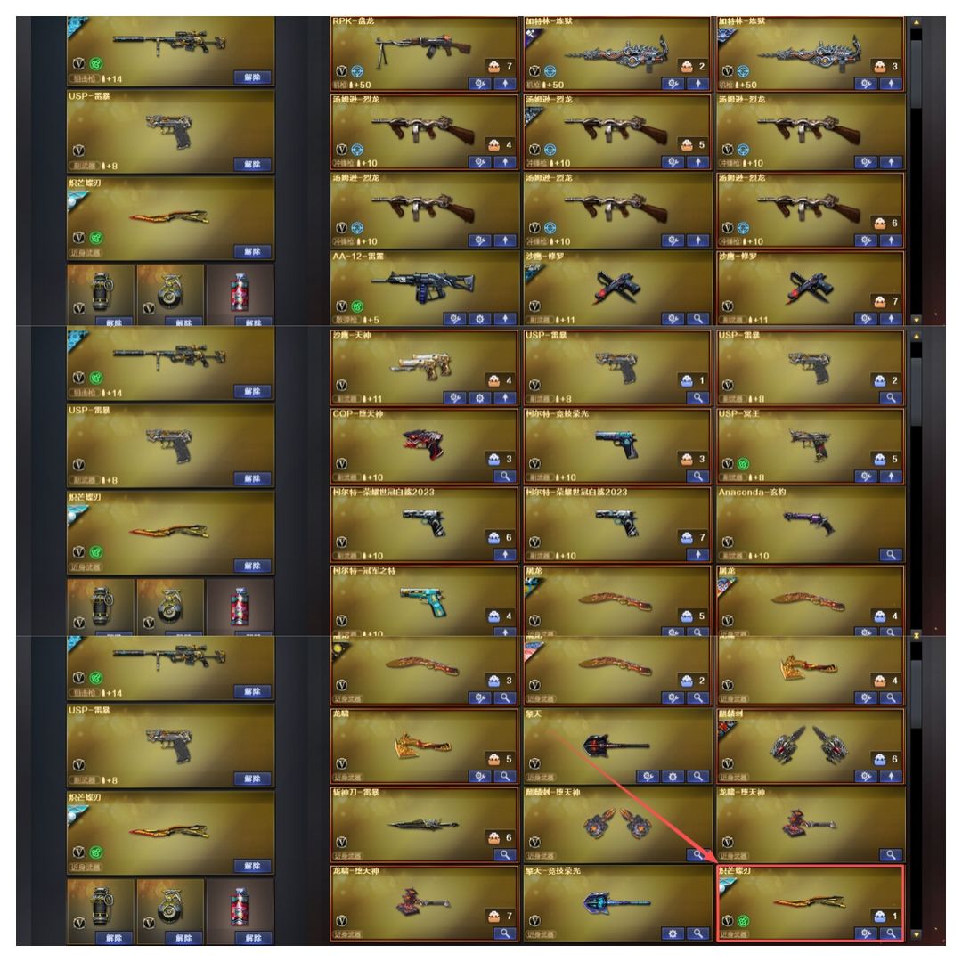 光海夜岚❤传说女帝❤幻神音效卡9皮❤USP冥王雷暴冠军之特炽芒蝶刃❤炼狱泡泡象❤天戎幻影星神白虎生化
