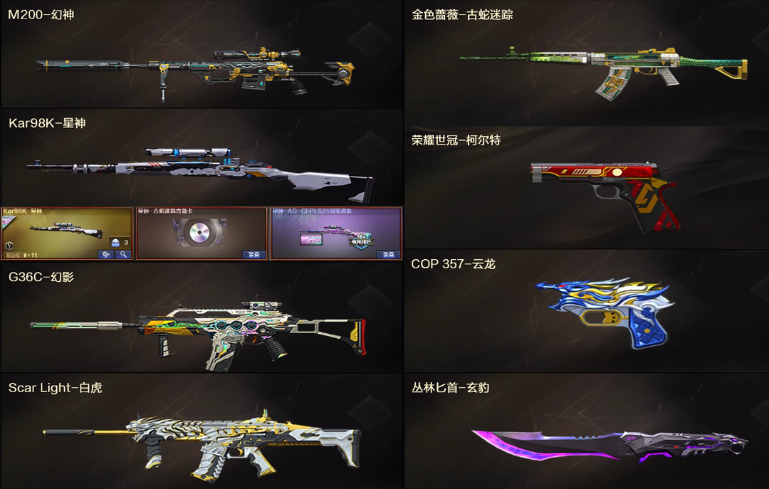爆破装❤星神AG冠军音效卡❤幻神白虎G36C幻影金色蔷薇+世冠柯尔特COP匕首❤修罗天神屠龙+机械姬
