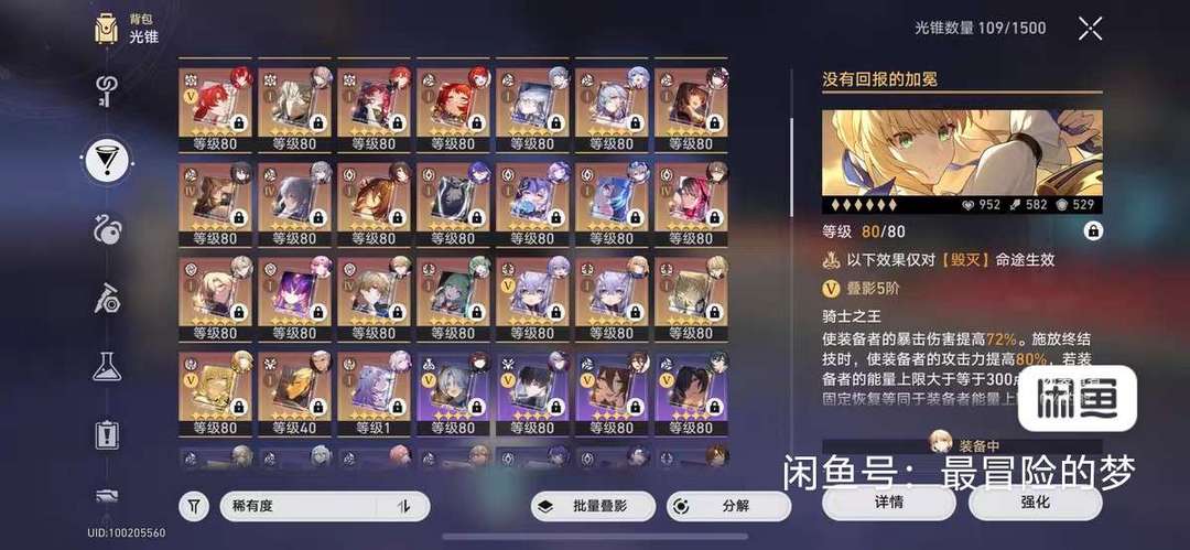 装备描述:星穹铁道26满命/满命满精saber/满命阿格莱雅/满命飞霄/满命缇宝/满命乱破/满命星期日/满命波提欧/满命知更鸟/满命黄泉/满命真理/满命黑天鹅/满命霍霍/