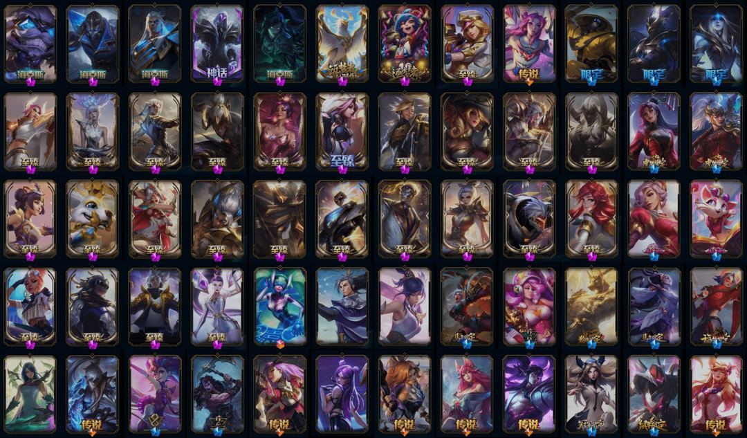 ██ 全英雄 1200皮丨50神话丨可排位丨穿星御星丨神龙李青艾希丨莲华狐狸锤石丨虎年赵信皎月