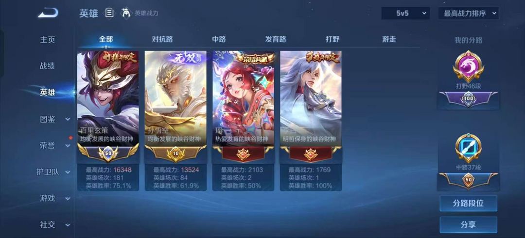 (高危禁排位)4月正式服在榜小国标玄策⭐省十孙悟空⭐巅峰千强打野路⭐白虎志限定⭐超多省级限定皮肤⭐