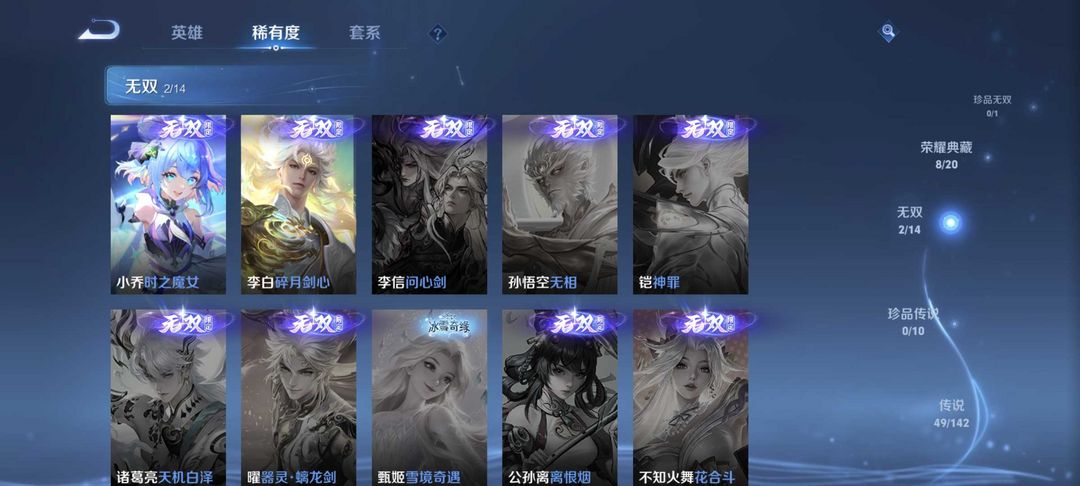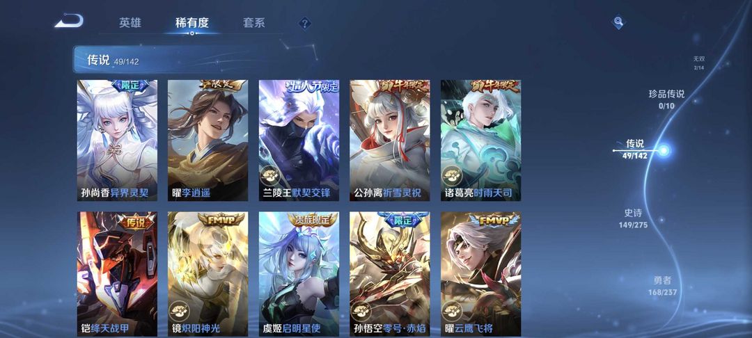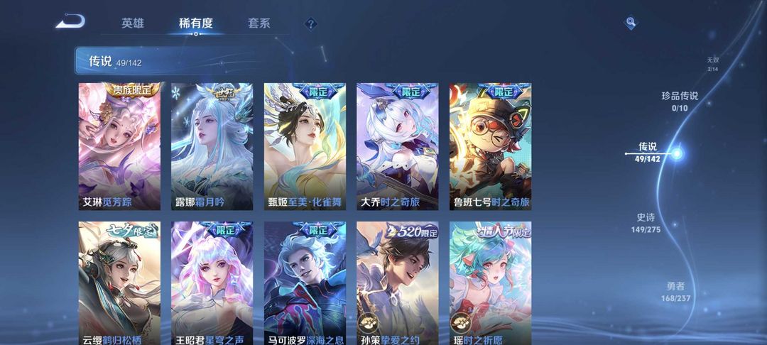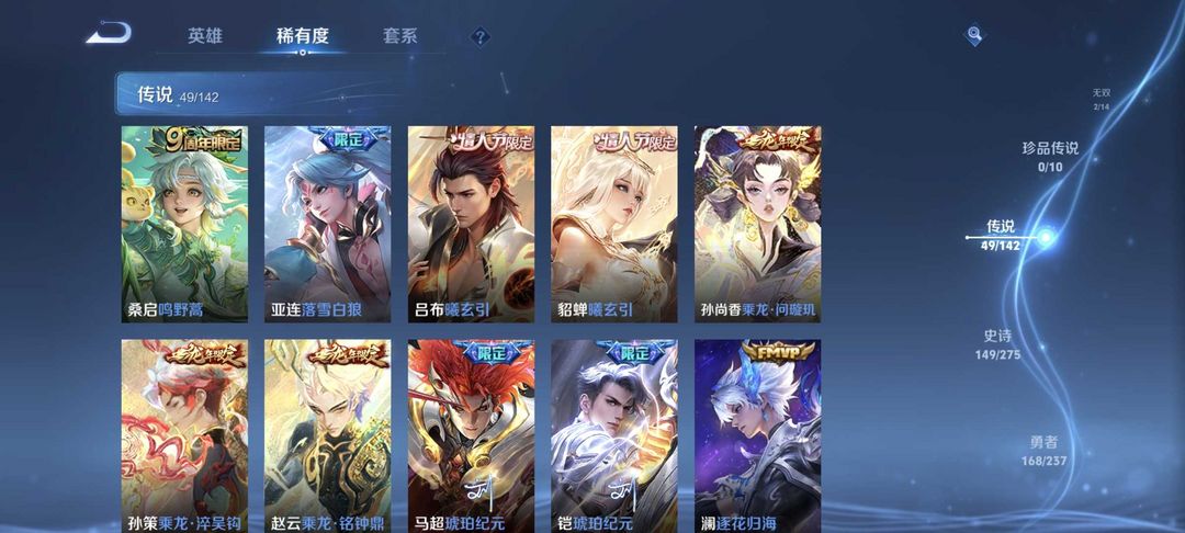 9典藏⚡满蛇限⚡李白无双⚡小乔无双⚡虞姬典藏⚡情人限定⚡60传说⚡4星传说