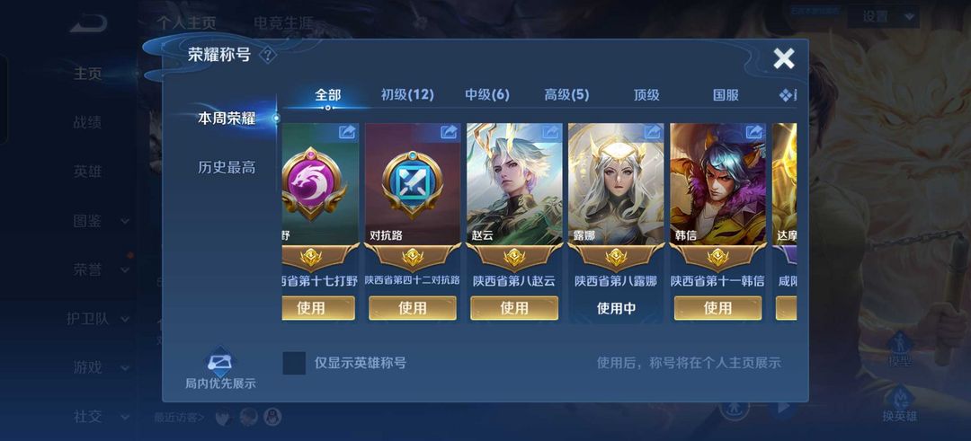 四月在榜省标露娜韩信赵云❤️历史国服露娜赵云国服李信小国标韩信达摩兰陵王省级打野新皮肤