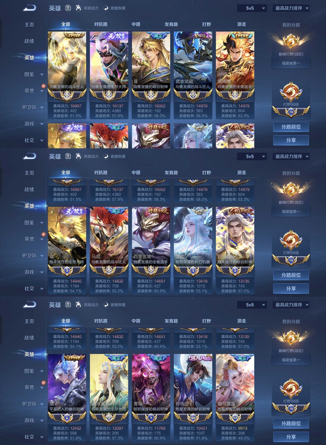只能娱乐模式四月在榜小国标打野百段打野九大国标❤️+16个省标马超曜凯玄策镜露娜国服韩信霏