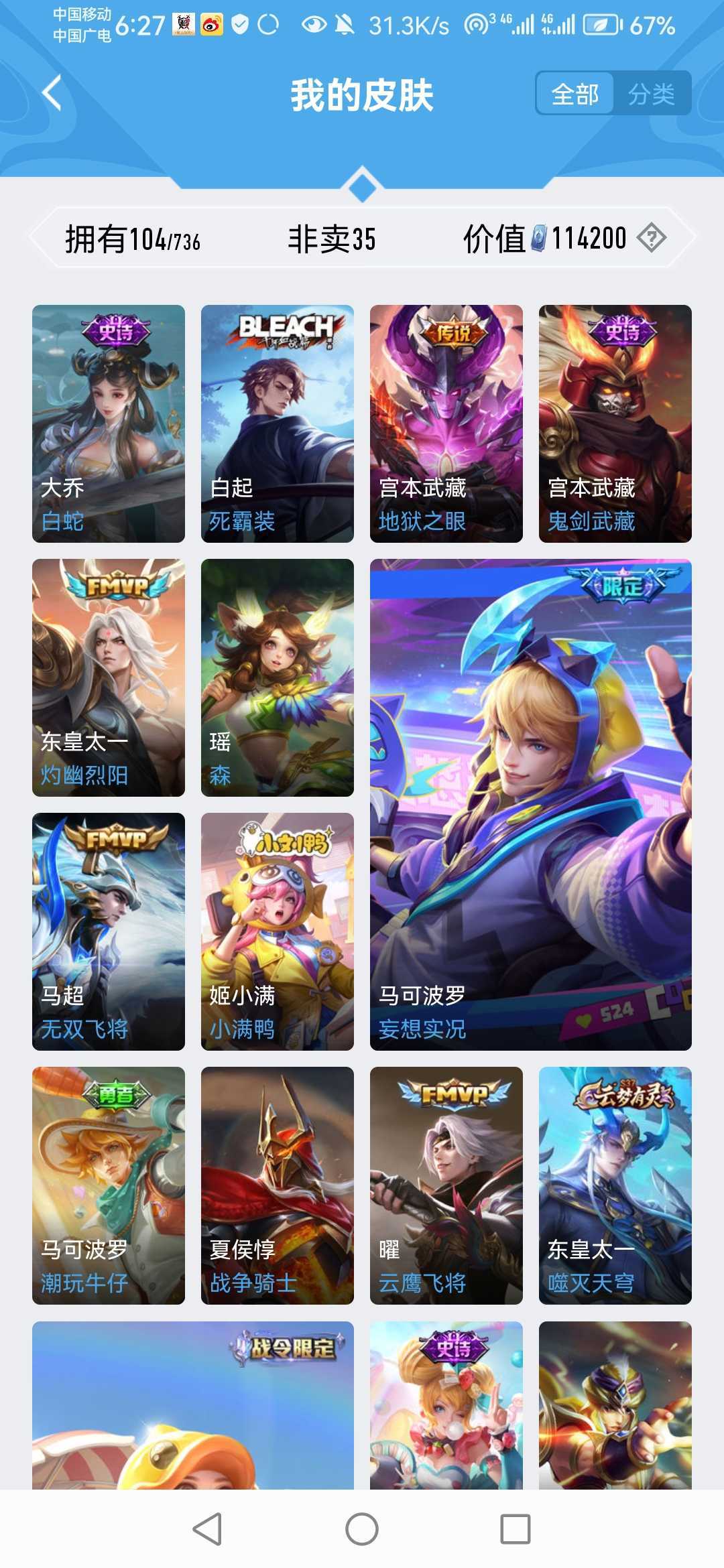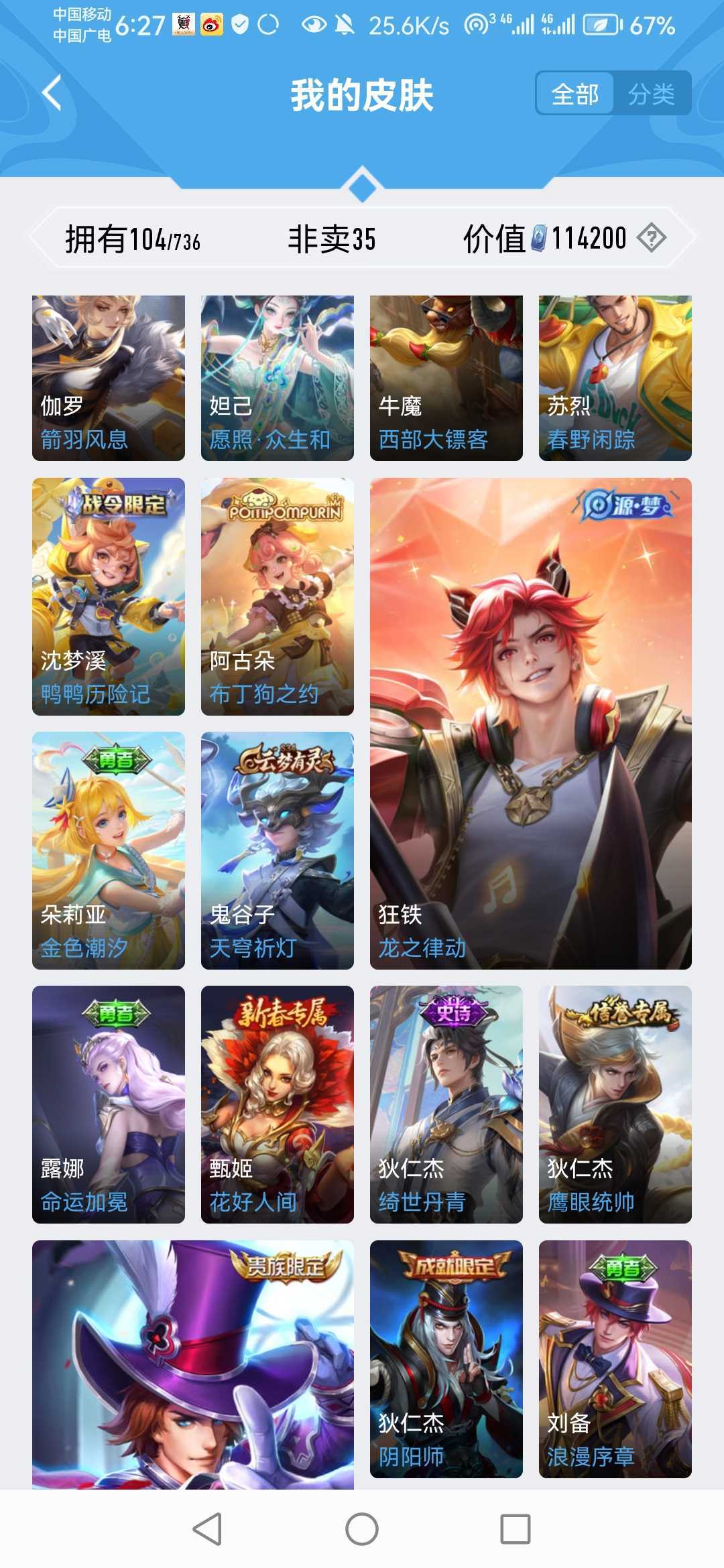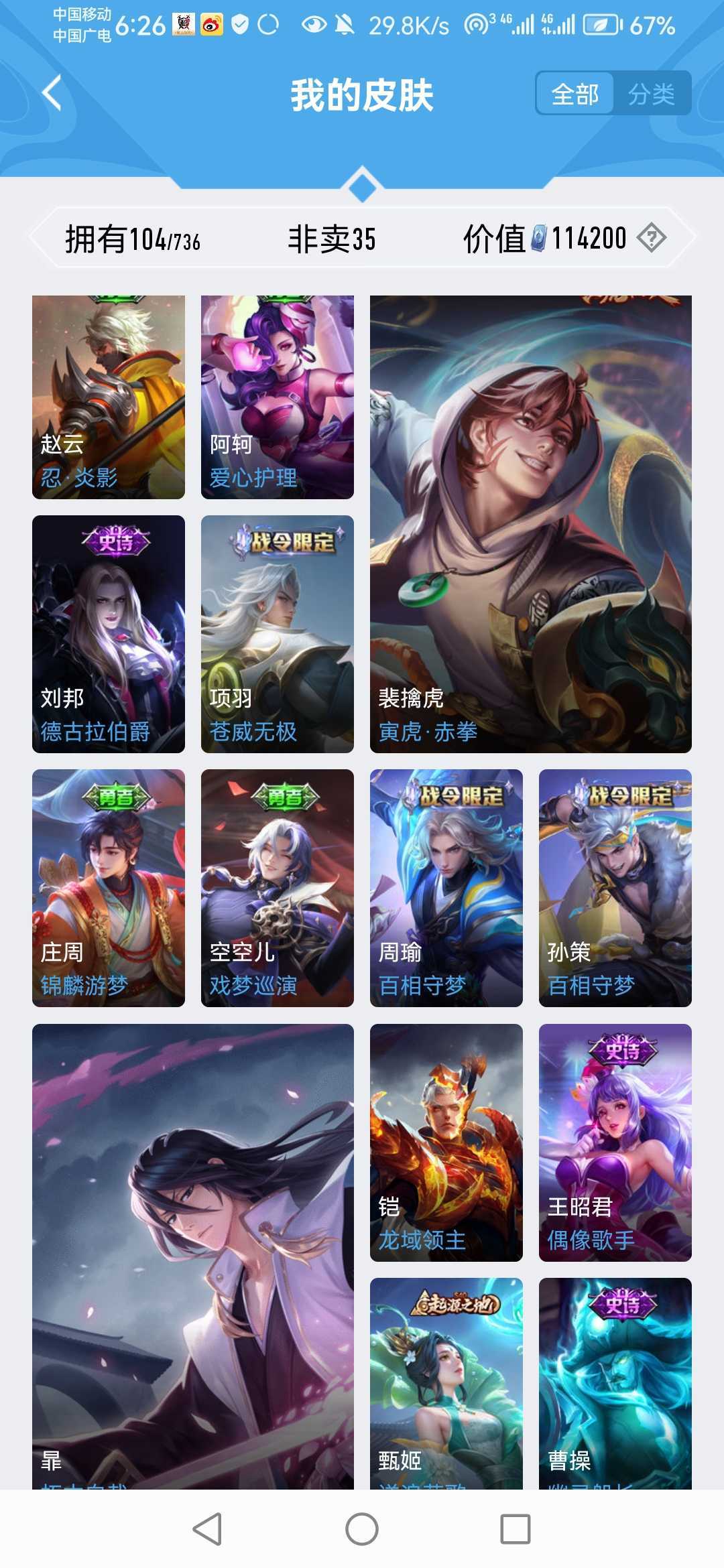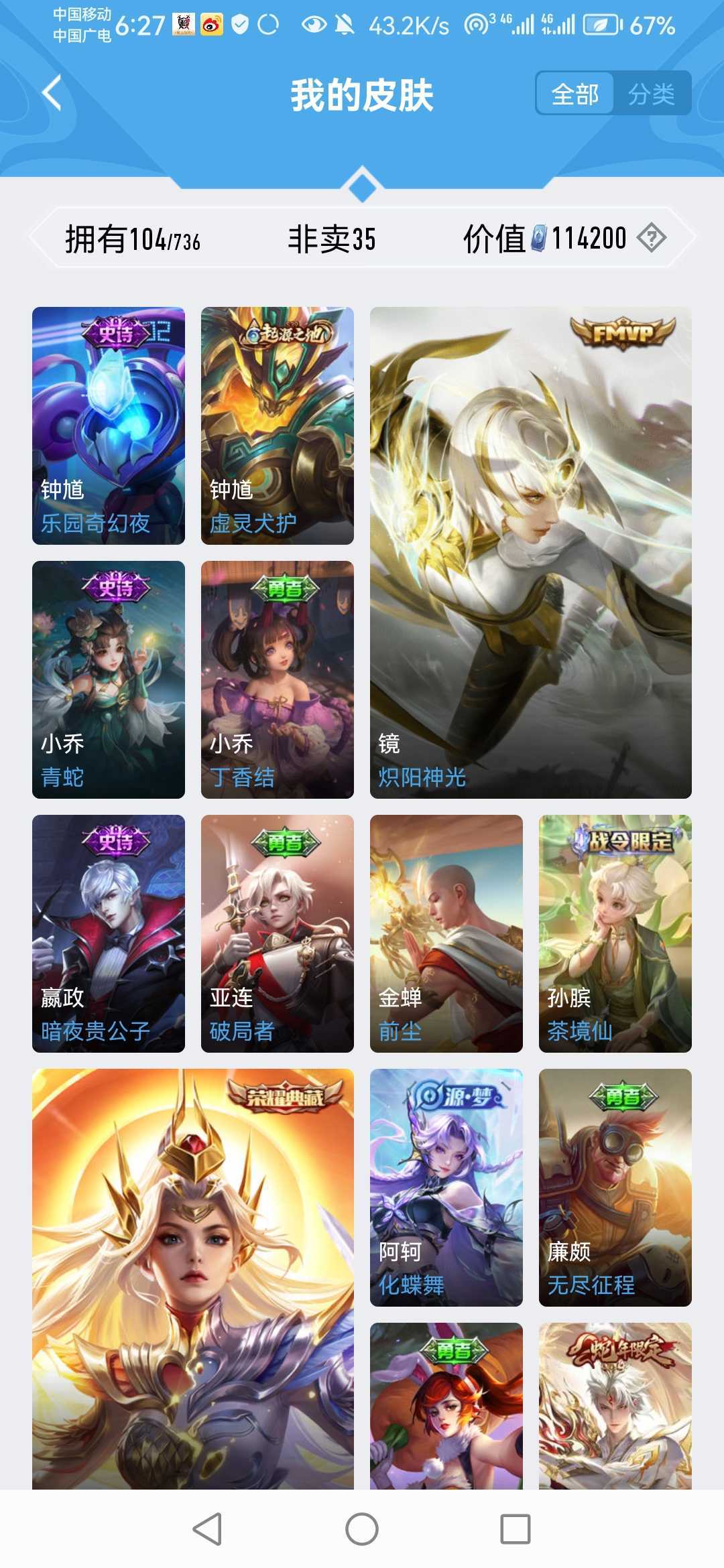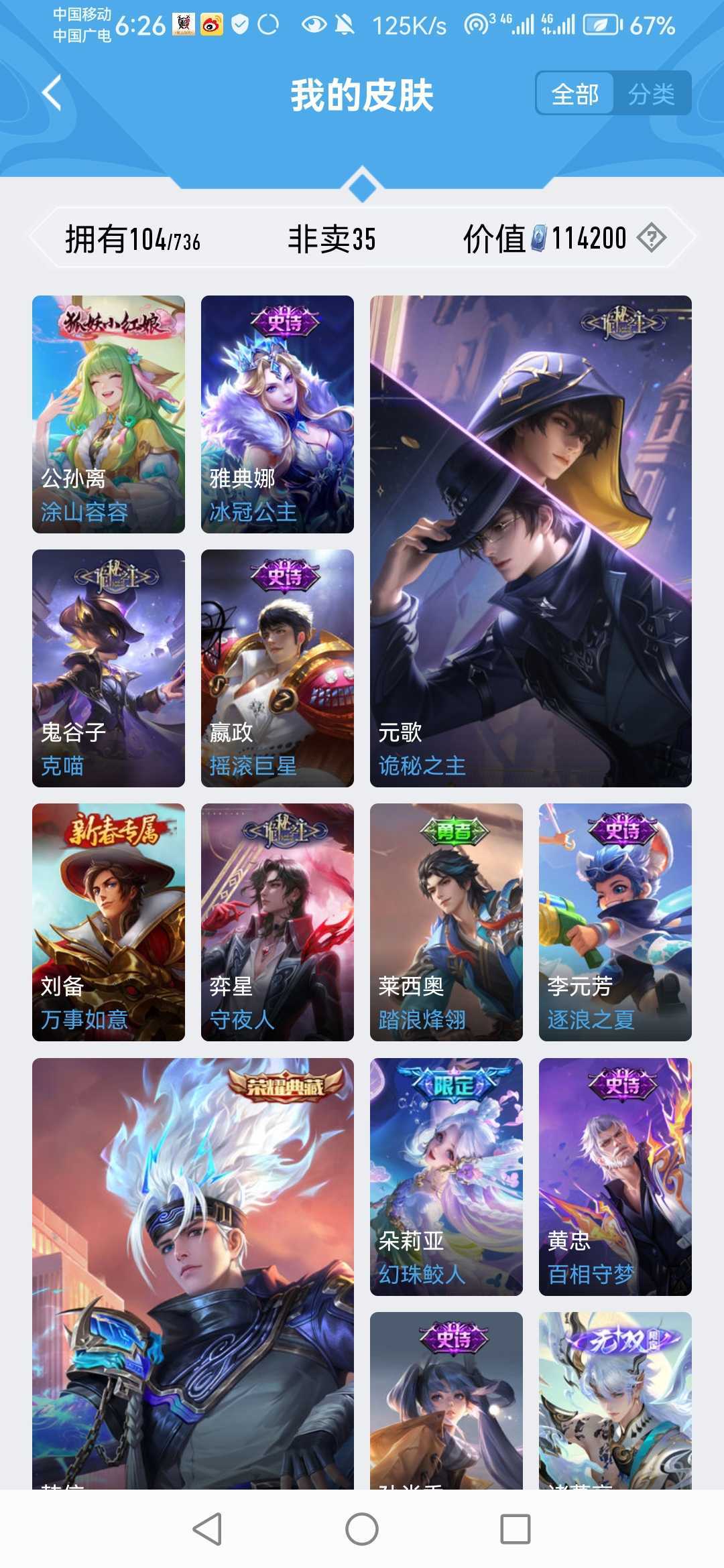 诸葛亮无双♥诡秘之主♥马克妄想♥霏珍品♥木兰典藏♥无双飞将♥韩信典藏♥岁时盈♥云鹰飞将