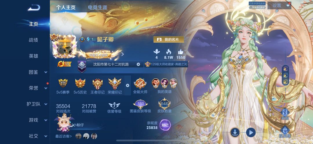 荣耀贵族❤全套马年问心剑❤3小国30金标❤14典藏 14无双 满珍品 5天幕 1小兵❤打野对抗号