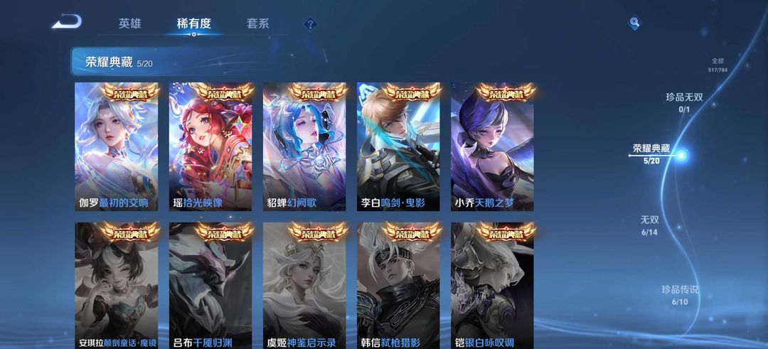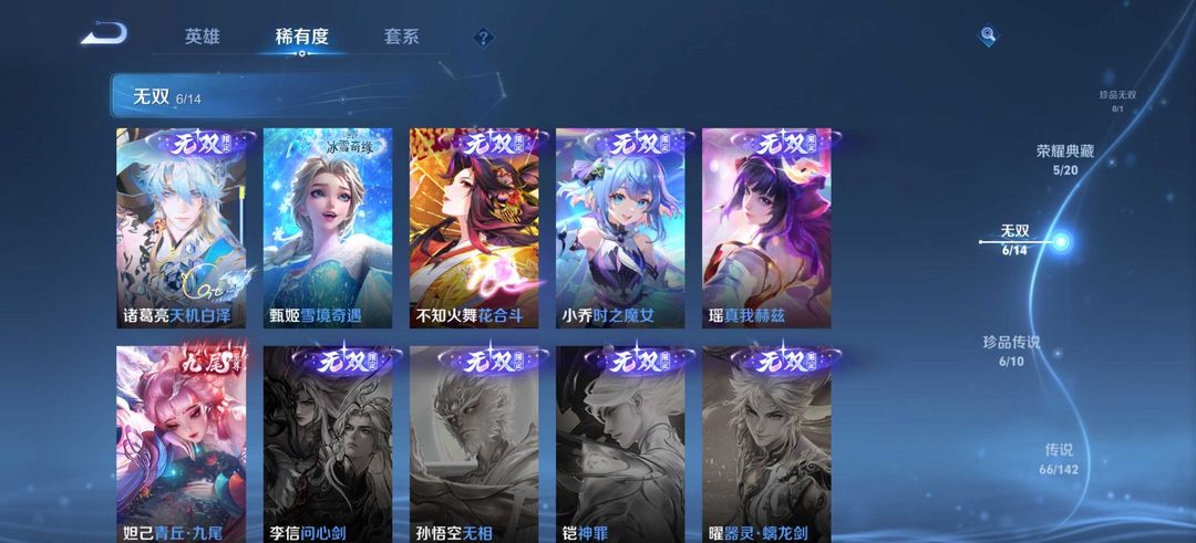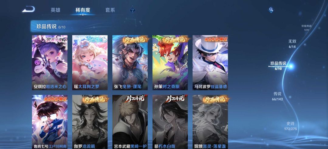 v10✨荣耀典藏5✨无双6✨珍品传说6✨传说66✨有怪盗基德✨李白典藏✨男女都可以玩