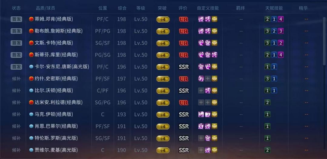 租3送1角色名:斯台UR库里詹姆斯邓肯卡特
