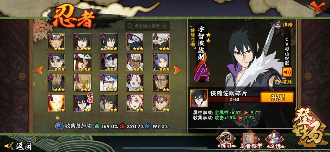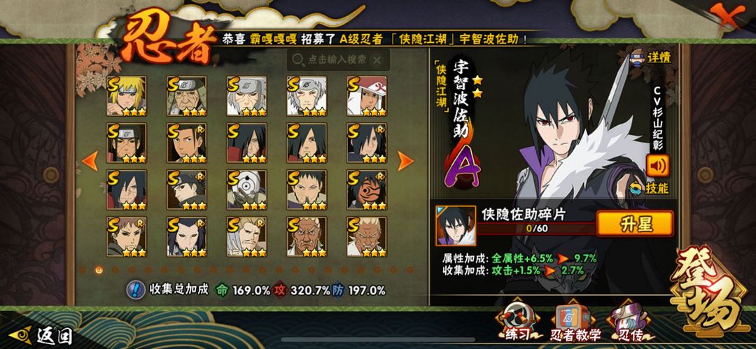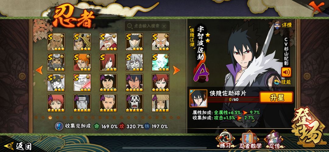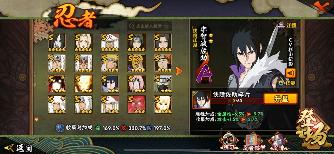 侠隐佐助⭐52S⭐3400W⭐九喇嘛水门⭐六尾鸣人⭐传说自来也⭐忍战带土⭐天道超⭐须佐卡卡西