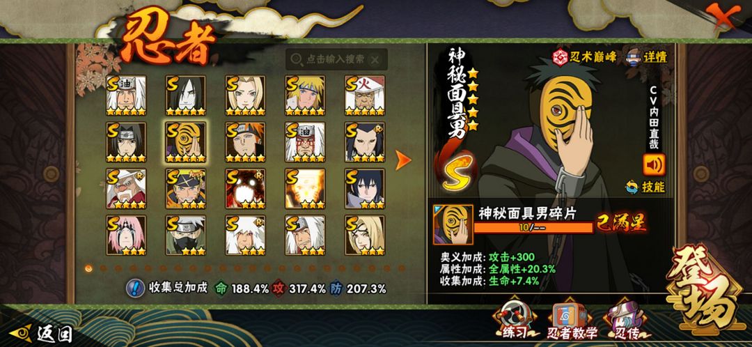 六道带土 漂泊小南❤️56S❤️375忍❤️3260w❤️侠隐佐助❤️全忍法帖