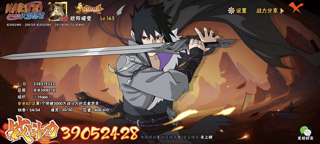 侠隐佐助+鹰♐至高榜一➕3900W♏全忍者407♥️全通灵✨漂泊带土黑绝✔♓双查克拉刃具团本利器♥️