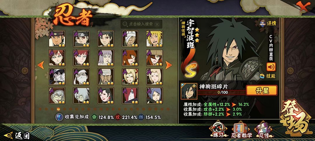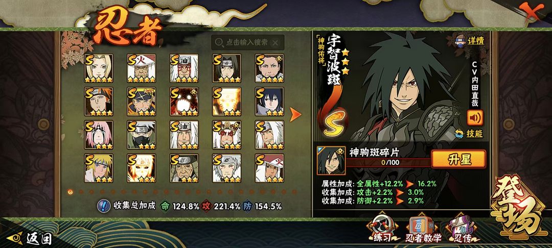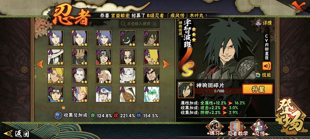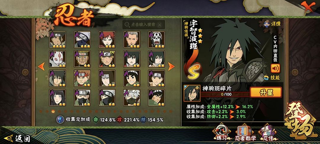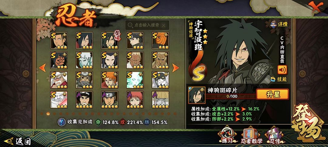 神驹佑将斑⭕六道带土⭕侠隐佐助⭕325忍⭕2400W战⭕黑绝