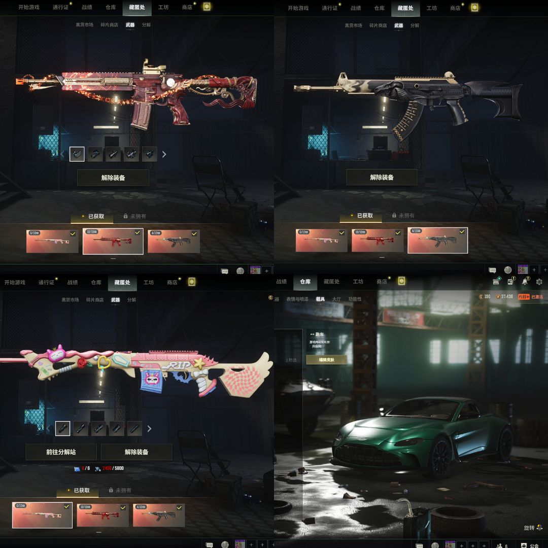 5段1000皮⑩级朱雀M416⑥粉梦德拉贡④恶魔ACE⚛️3色阿斯顿马丁跑车小丑女