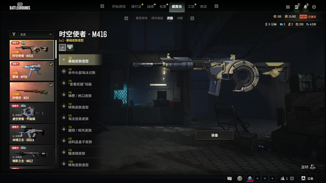 时空使者M416√保时捷跑车√四级悟空M24√金面具√发光手臂√发光手臂√黑鬼√柏林鞋悲喜套√