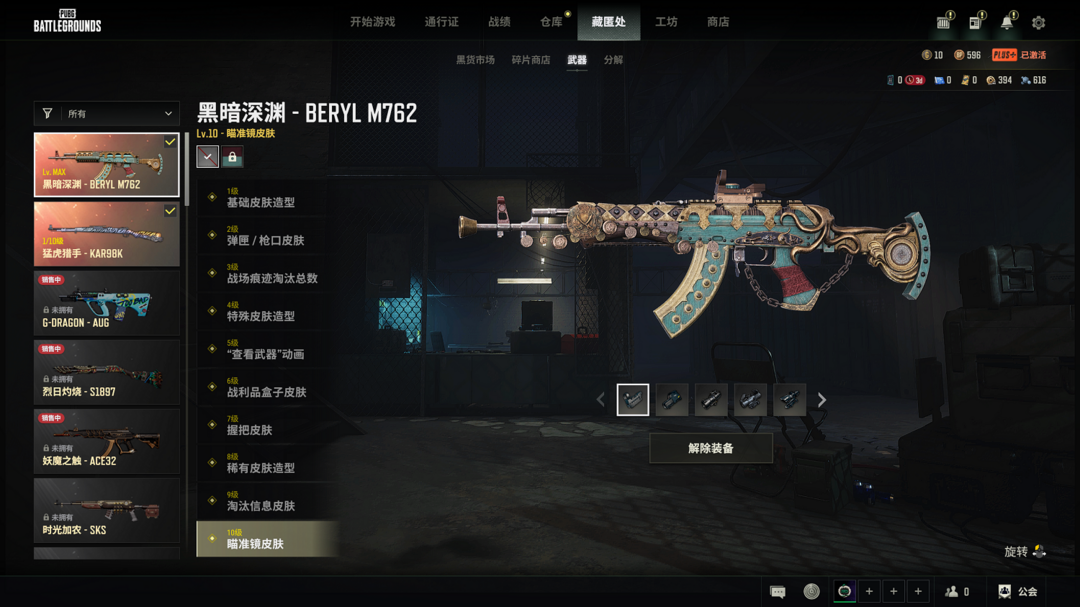 可排位/满级成长武器/满级水麒麟黑暗深渊M762/1级猛虎猎手98K/到时继续玩