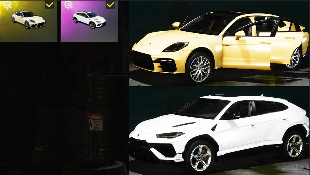 (2满级)保时捷帕梅拉/兰博SUV/满级霓虹AUG/满级异色烈日灼烧/寒蚀MP5K/狂怒之雾M79(