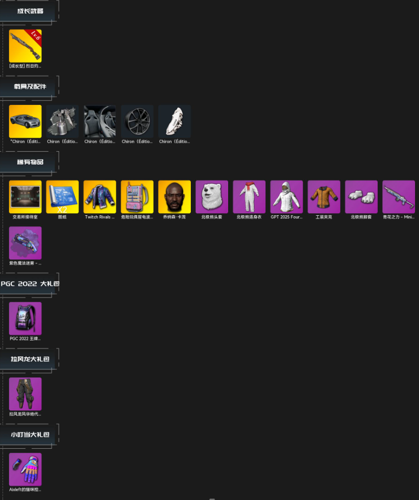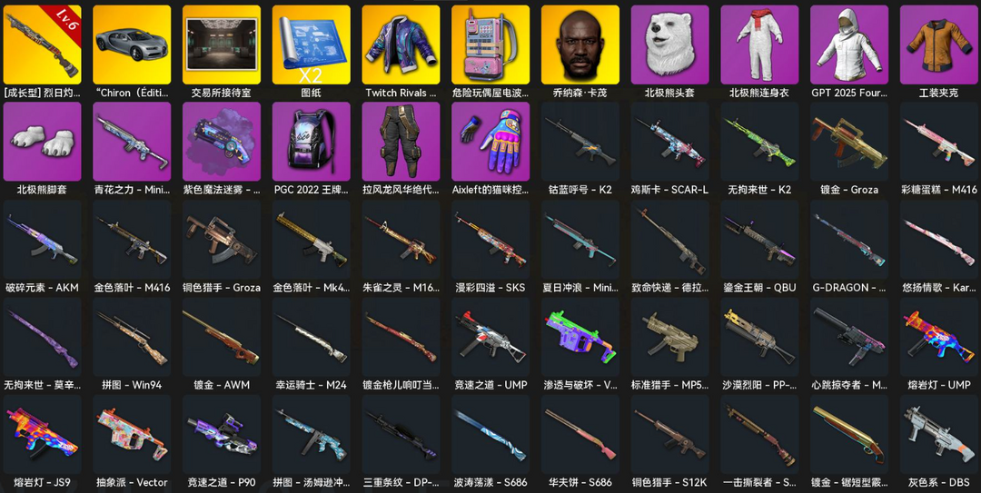 灰色布加迪/满级烈日灼烧-S1897/紫色魔法迷雾M49/电磁包/老黑鬼/熊脚/拉风龙裤