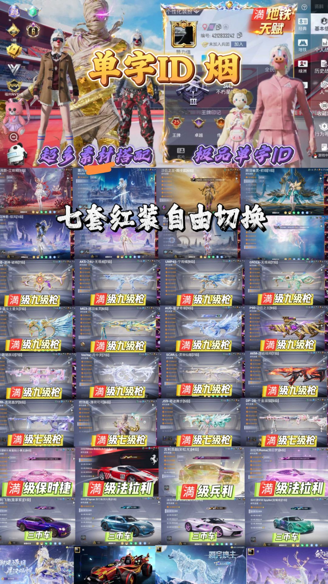 限制: 租号11次及以上 |装备描述:各位租号的小伙伴们好呀 在游戏里面号主不会联 系你们哦,小心给骗。 这是我一点点攒出来的心血号,每把升级枪、每个皮肤都藏着我好多好多的热爱。 求求大家租号时手下留情: 不要分解任何枪械/道具,不要随意丢弃物品 不要恶意毁号、乱改设置 不要开外挂、不要在游戏里骂人、不要恶意挂机 账号是我自己辛苦养起来的,一旦被封/被毁,真的会特别特别难过… 如果您玩得开心,也麻烦多多爱惜它,感激不尽 祝您每局都吃鸡,天天都有好心情