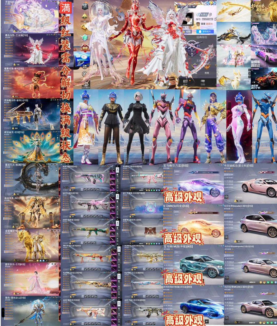 满级新红云歌*哪吒*图卡盟等10红/4把8级特效*四辆高级外观载具/红蹦蹦*螳螂