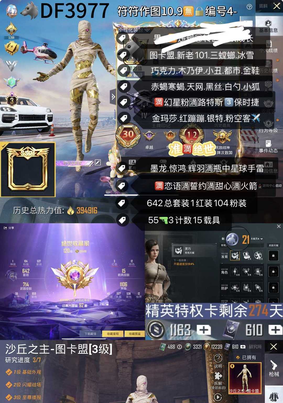 限制: 租号5次及以上 | 撤单率<40%才可租用此帐号装备描述:满级玛莎拉蒂满级路特斯3级图卡盟木乃伊新老101冰雪三螳螂巧克力小丑都市赤寒蝎金鞋满恋语满甜心满火箭39万热力准满绝世战神框