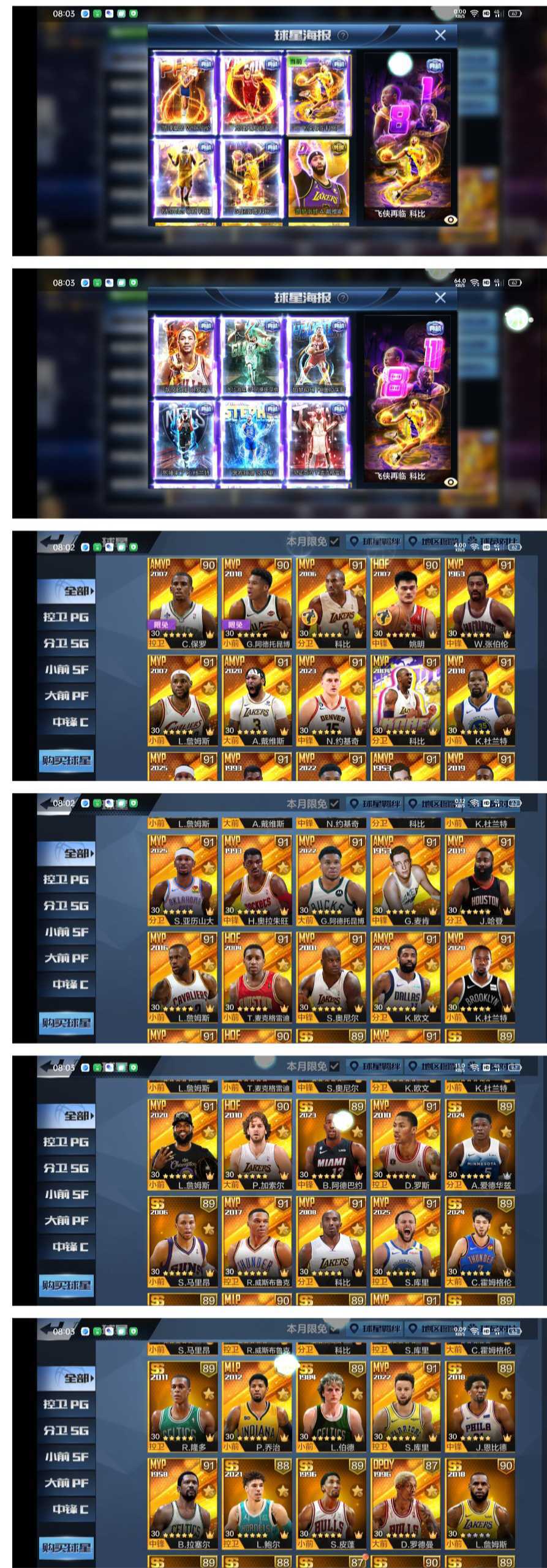 新库里可排位●21天选12典藏●姚明二专属●大帅压力戴维斯新科欧文●屠龙二专属