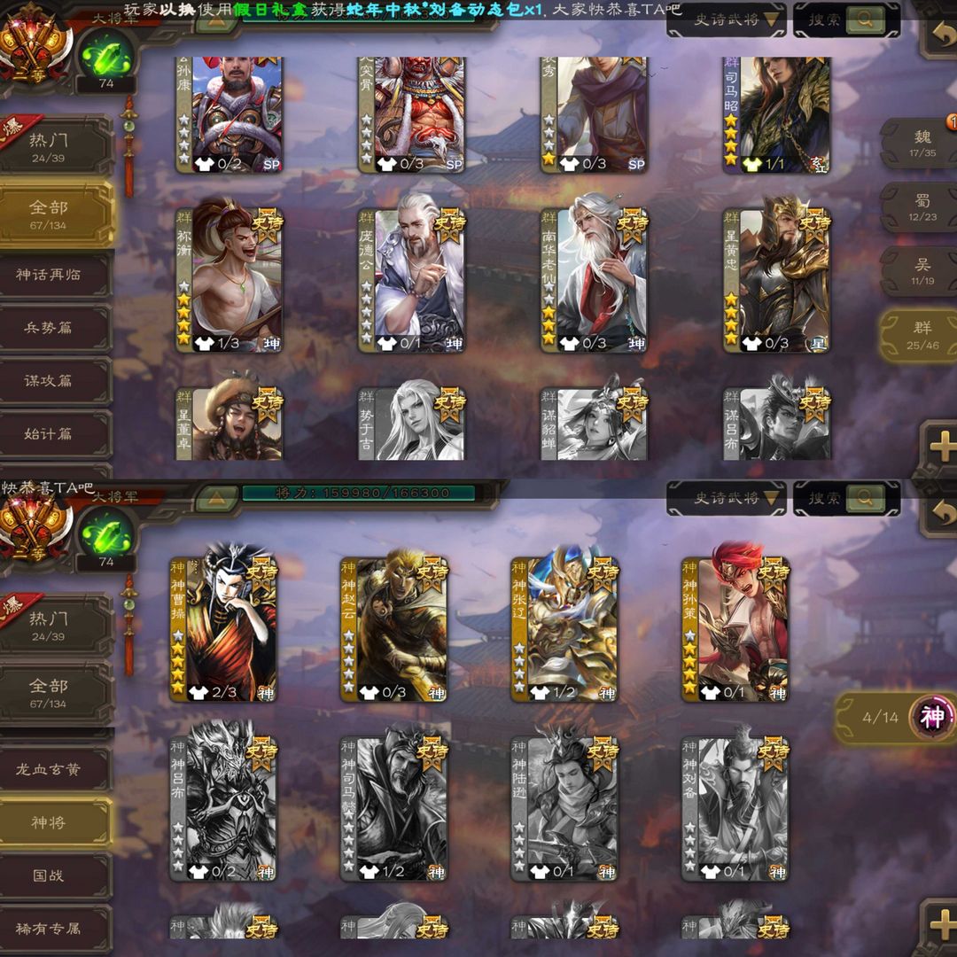 装备描述:刘焉势太史慈界沮授神曹操谋诸葛曹髦司马昭清河公主张仲景裴秀神孙策 h60