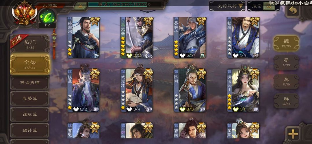 有卡二等大将军☆势国渊曹髦张奋神鲁肃谋陆逊☆动谋关羽动司马昭动清河公主动势陆郁生双形态动皮文鸯界钟会