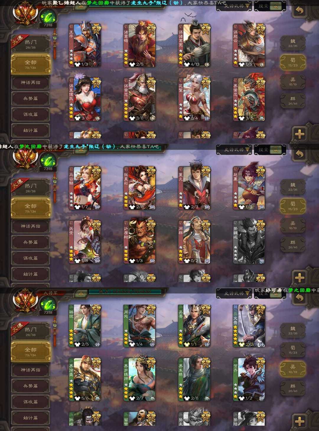 限制: 租号1次及以上 |装备描述:魏:双形态文鸯 羊微瑜 双形态司马昭 马钧 曹婴 双形态界钟会 蜀:谋诸葛亮 谋夏侯氏 谋黄忠 吴:动态界徐盛 留赞 群:动态刘焉 祢衡 南华老仙 动态杜预 神:动态神郭嘉 神孙策 神甘宁 神陆逊