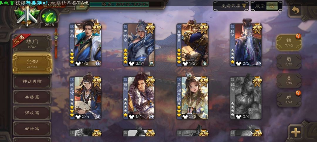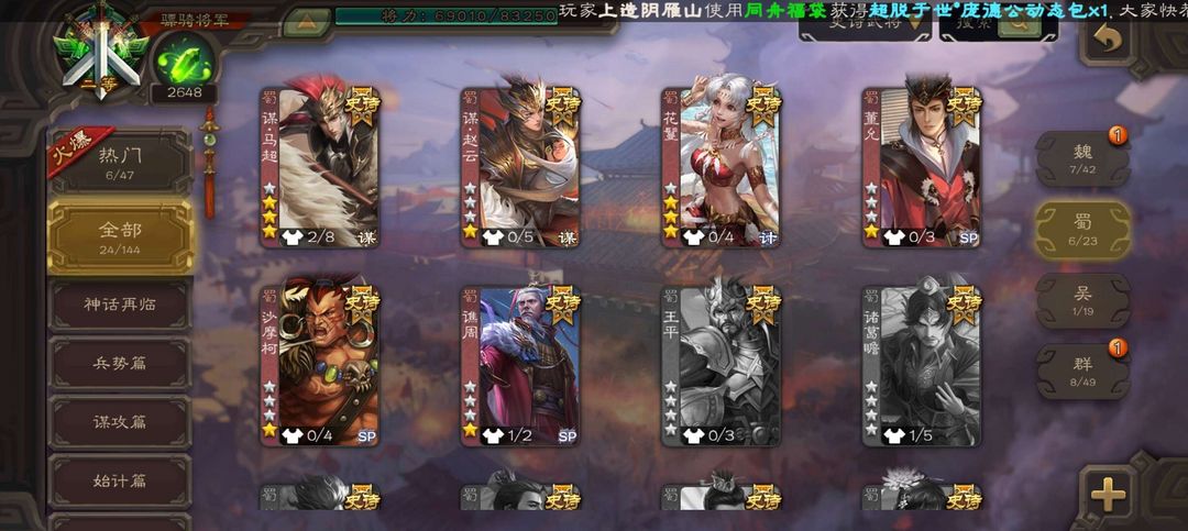 二等骠骑24ss,排位将足,豆子多三卡足,可排位可斗地主娱乐。