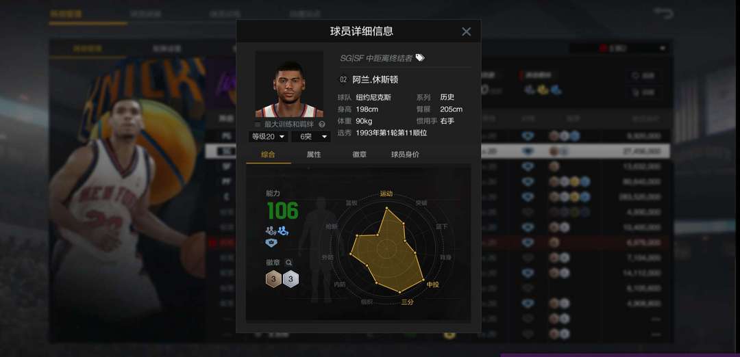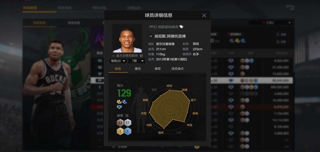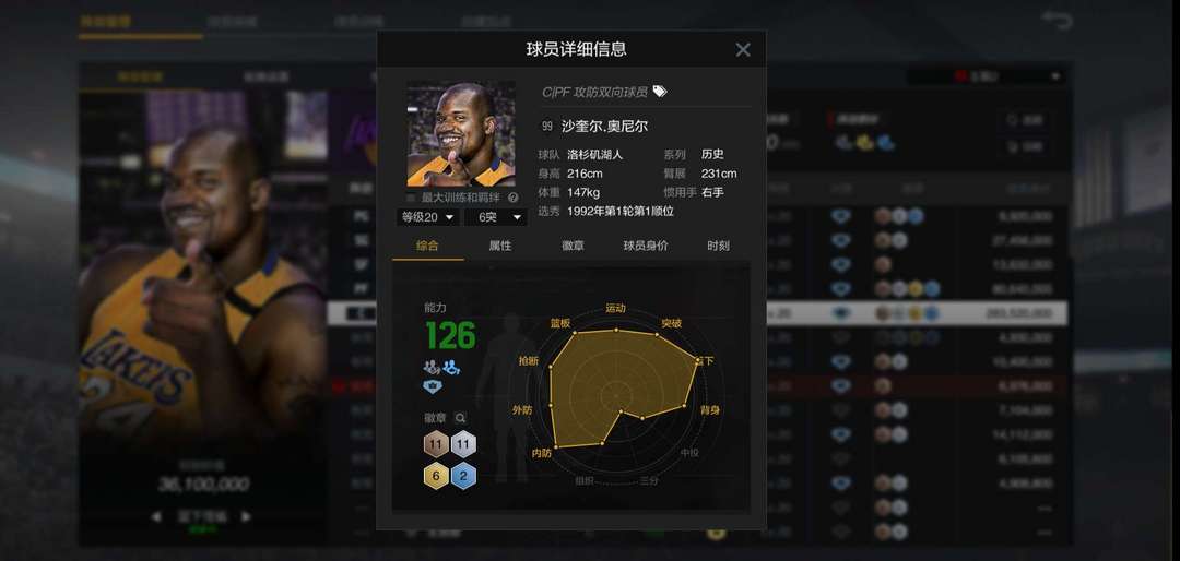 装备描述:极品街头王朝五亿阵容六突时刻湖人奥尼尔湖人鲨鱼十突字母哥十突布朗休斯敦班巴历史阿里扎可排位